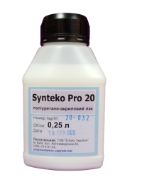 Synteko Pro 20 – однокомпонентний поліуретаново-акриловий лак, що забезпечує якісний зовнішній вигляд і високу міцність. Використовуються на паркетних і дерев’яних підлогах в вітальнях, спальнях, кухнях, прихожих, на сходах. Можна використовувати і на необробленый пробці та на інших дерев’яних виробах.