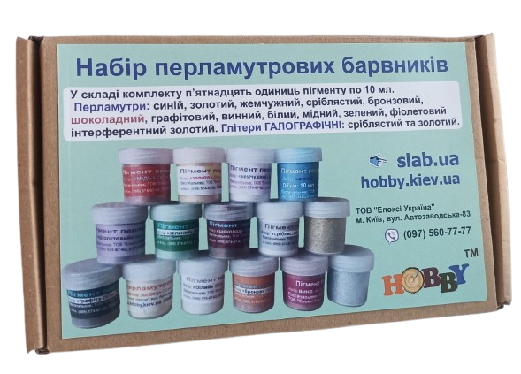 Пропонуємо вам асортимент домішок в епоксидну смолу. У створенні кожної прикраси з перламутром величезне значення має підбір вихідного матеріалу. Інтенсивність і багатобарвність райдужних переливів залежать від кута погляду на перламутрову пластину, і це необхідно враховувати при формуванні основи для камеї або кабошона. Ми пропонуємо: перламутри порошкоподібні – синій, зелений, перловий та ін., асортимент представлений об’ємом 10 мл, 20 мл, 50 мл.