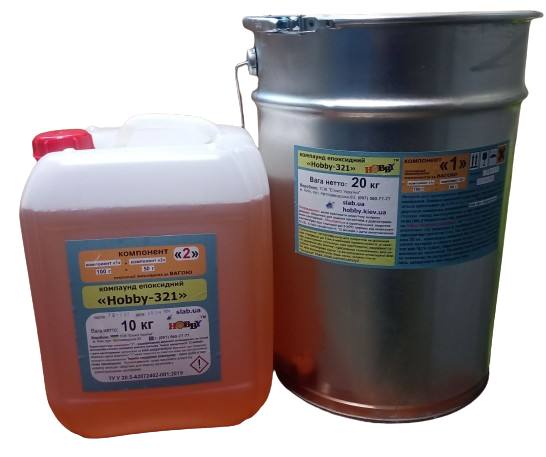 Характеристика: у складі КЕ «Hobby-321»: компонент “1” – низькомолекулярна епоксидна смола, модифікована монофункційним хімічно-активним пластифікатором; компонент “2” – модифікований аміновий затверджувач на основі циклоаліфатичного поліаміну рожевого кольору.