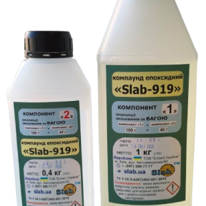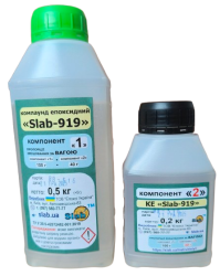 Характеристика продукту: у складі КЕ «Slab-919»: компонент “1” – низькомолекулярна рідка епоксидна смола, модифікована трифункційним реактивним пластифікатором; компонент “2” – аміновий затверджувач вищого класу.
